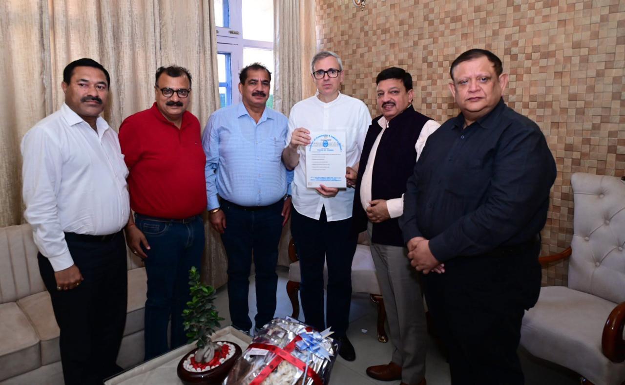 A delegation of Chamber of Commerce & Industry Jammu under the leadership of Sh. Arun Gupta called on Hon’ble Chief Minister Sh. Omar Abdullah and discussed a wide range of developmental and business related issues. At the outset Sh. Arun Gupta congratulated Hon’ble Chief Minister Sh. Omar Abdullah on the marvelous and historic triumph of J&K Cricket Association by winning the prestigious Ranji Trophy final against the studded Karantake team. This achievement has brought great honour to the region on the national Stage.